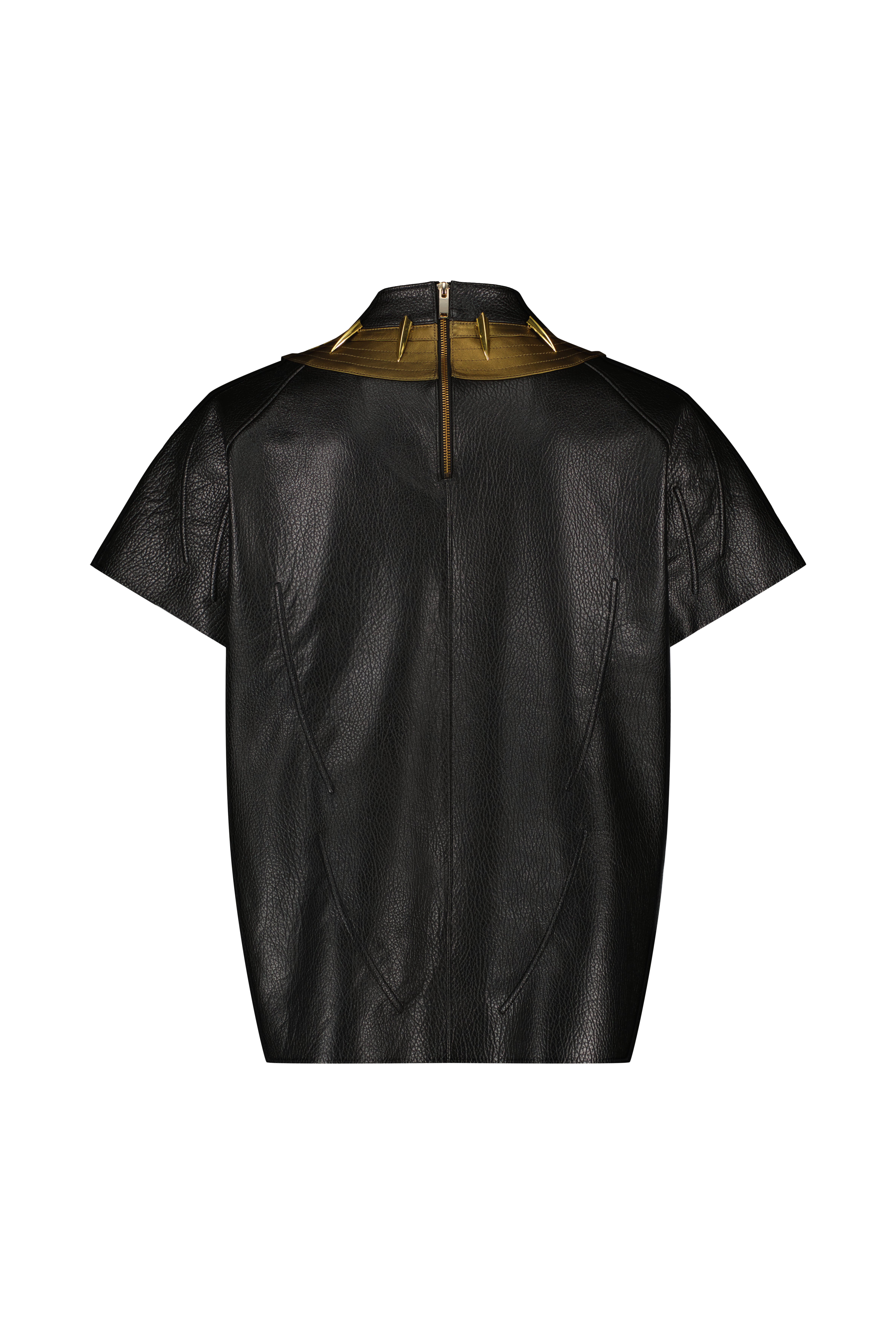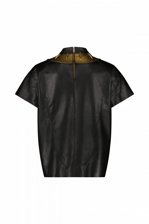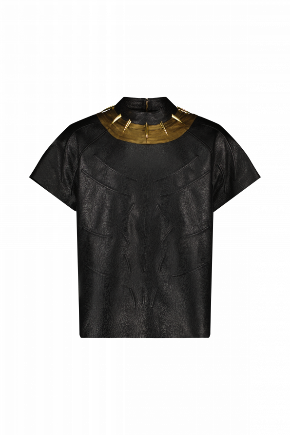 Les empiècements dorés métalliques qui ornent le T-shirt rappellent le collier emblématique de l’armure de Killmonger, ajoutant une touche de royauté à votre style.